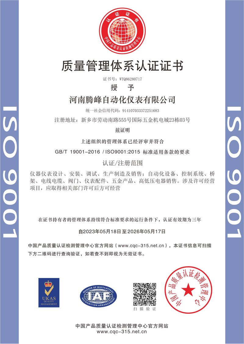 質(zhì)量管理體系認(rèn)證證書