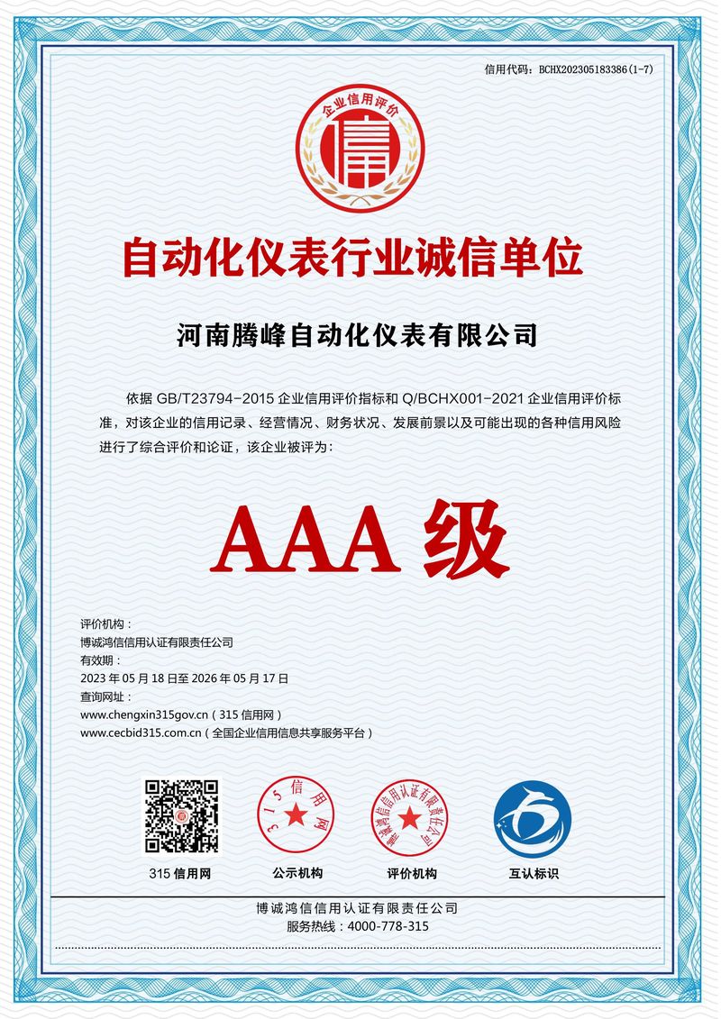 自動(dòng)化儀表行業(yè)誠信單位