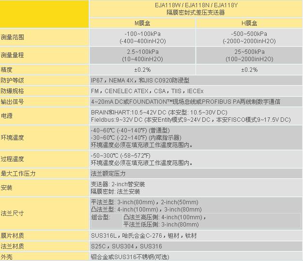 密封隔膜是用于防止過程介質(zhì)直接進入差壓變送器的壓力傳感器組件中,它們是通過注滿流體的毛細(xì)管與變送器連接的。EJX118W、EJA118N和EJA118Y型隔膜密封式差壓變送器用于測量液體、氣體或蒸汽的流量以及液位、密度和壓力,然后將其轉(zhuǎn)變成4~20mA DC的電流信號輸出。EJA系列支持BRAIN、HART和FOUNDATION?現(xiàn)場總線或PROFIBUS PA通信協(xié)議。